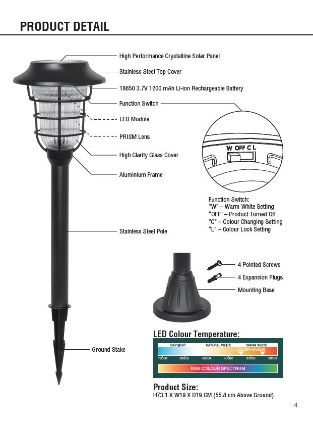 H 73.1 X W19 X D19 CM (55.8 cm Above Ground)